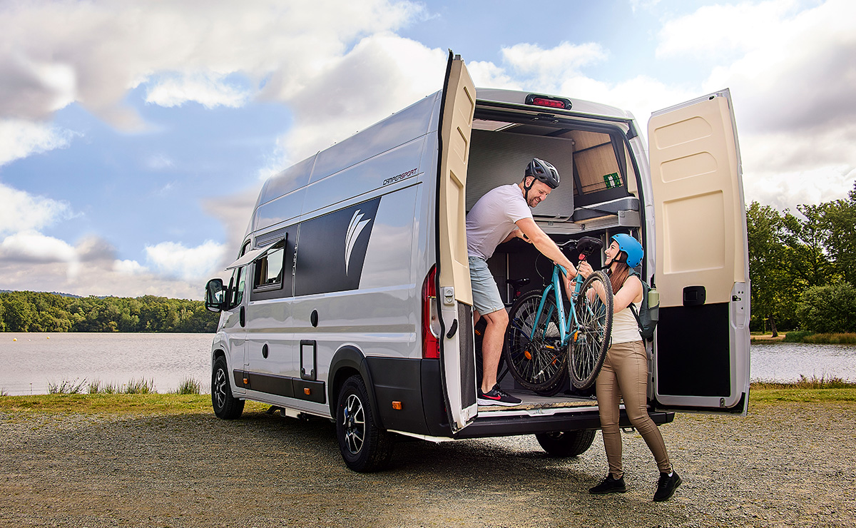 Stabilisieren und sichern Sie Ihr Motorrad oder Ihre Fahrräder mit den integrierten Befestigungsmöglichkeiten